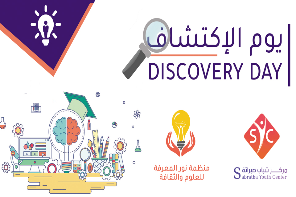 تحت تنظيم وإشراف منظمة نور المعرفة للعلوم والثقافة ومركز شباب صبراتة أقيم اليوم السبت (يوم الاكتشاف DISCOVERY DAY ) الذي شارك فيه عدد الأقسام العليمة المختلفة وعدد من الفرق والجمعيات والمنظمات الأهلية، حيث كان الهدف الرئيسي لهذا اليوم هو التعريف بالابتكارات والاكتشافات العلمية والمهنية التي تهتم بتقديم الخدمات المتنوعة للمواطن وإبراز مدى أهميتها ودورها , والجهات التي شاركت في يوم الاكتشاف هــي :