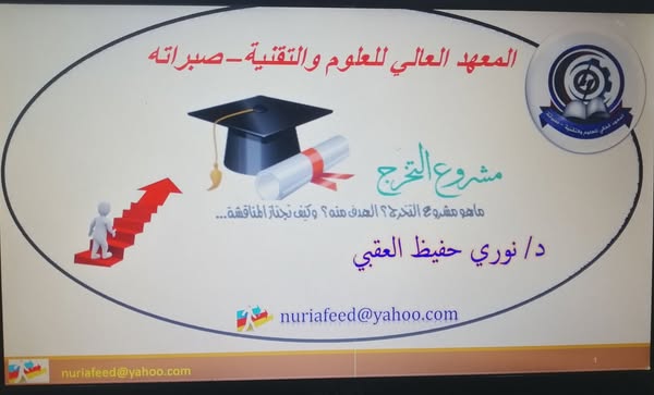 اقيم اليوم الاحد 8 / 12 /2024 م بمسرح المعهد محاضرة بعنوان ” مشروع التخرج من الفكرة إلى الإنجاز ” لطلاب الفصول الأخيرة بالمعهد ألقاها الدكتور نوري حفيظ العقبي.